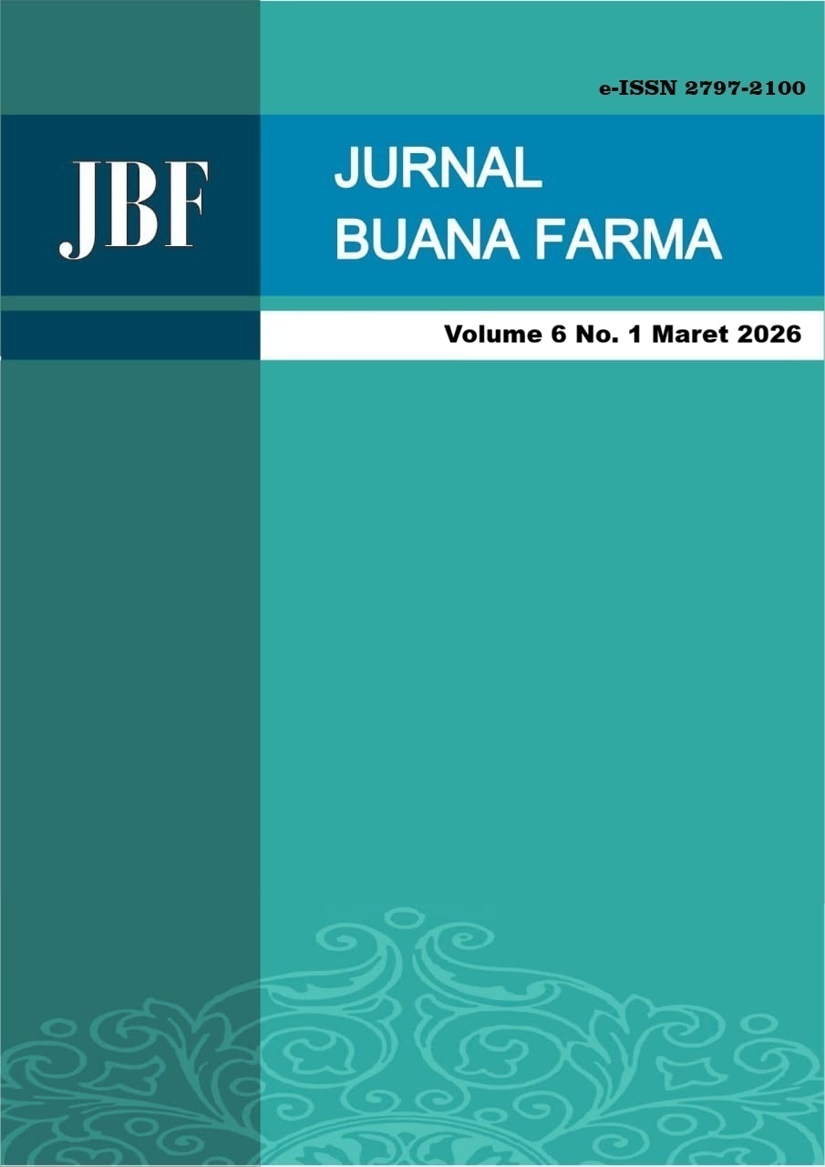 Jurnal Buana Farma is a scientific journal published by the Faculty of Pharmacy, Universitas Buana Perjuangan (UBP) Karawang, which serves as a platform for researchers to publish and disseminate their research findings. This journal provides a medium for publishing scientific articles resulting from research and development in the field of Pharmaceutical Sciences. Jurnal Buana Farma is published four times a year, in March, June, September, and December.